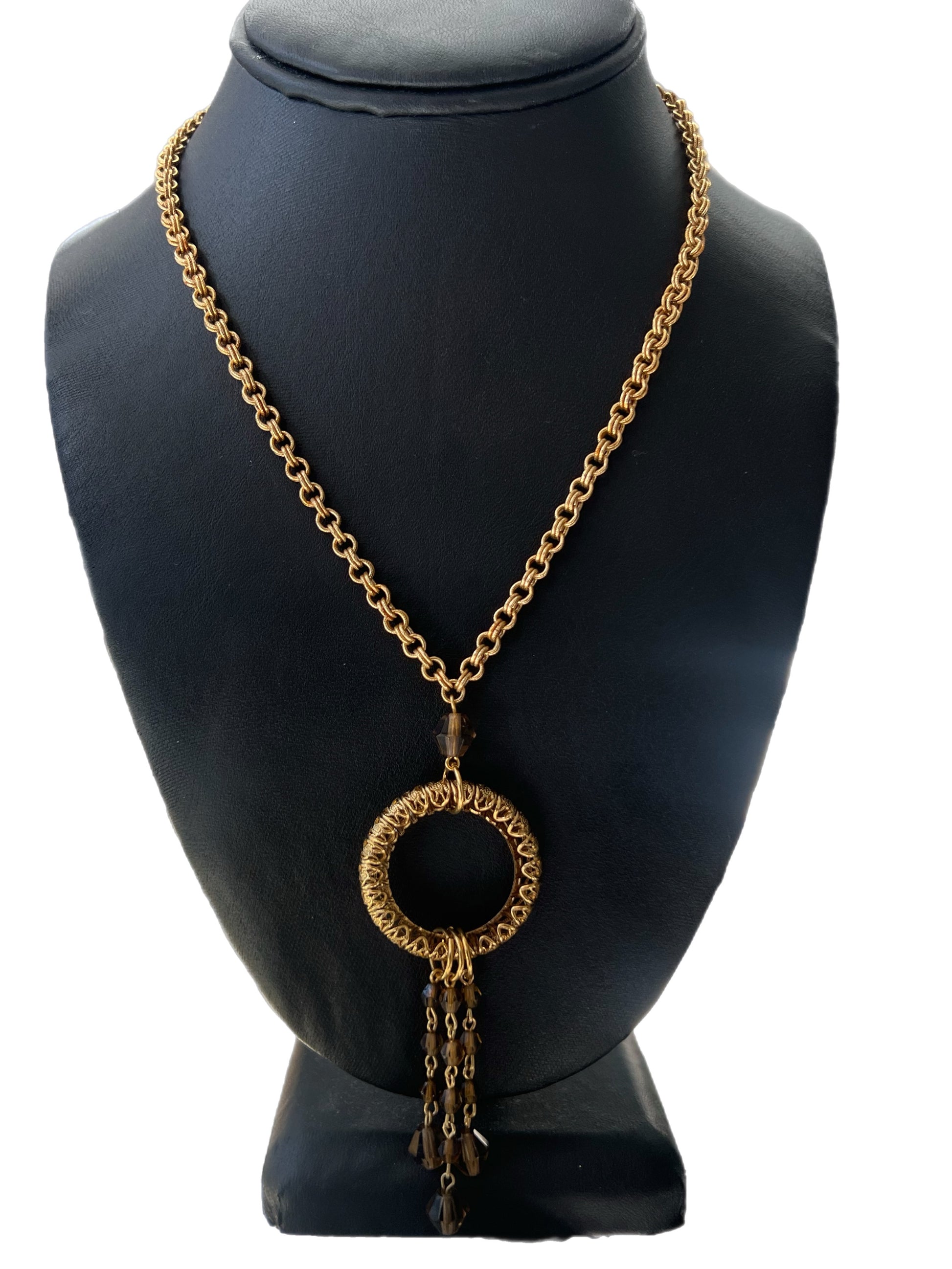 Gold Circle Pendant And Brown Beaded Tassel